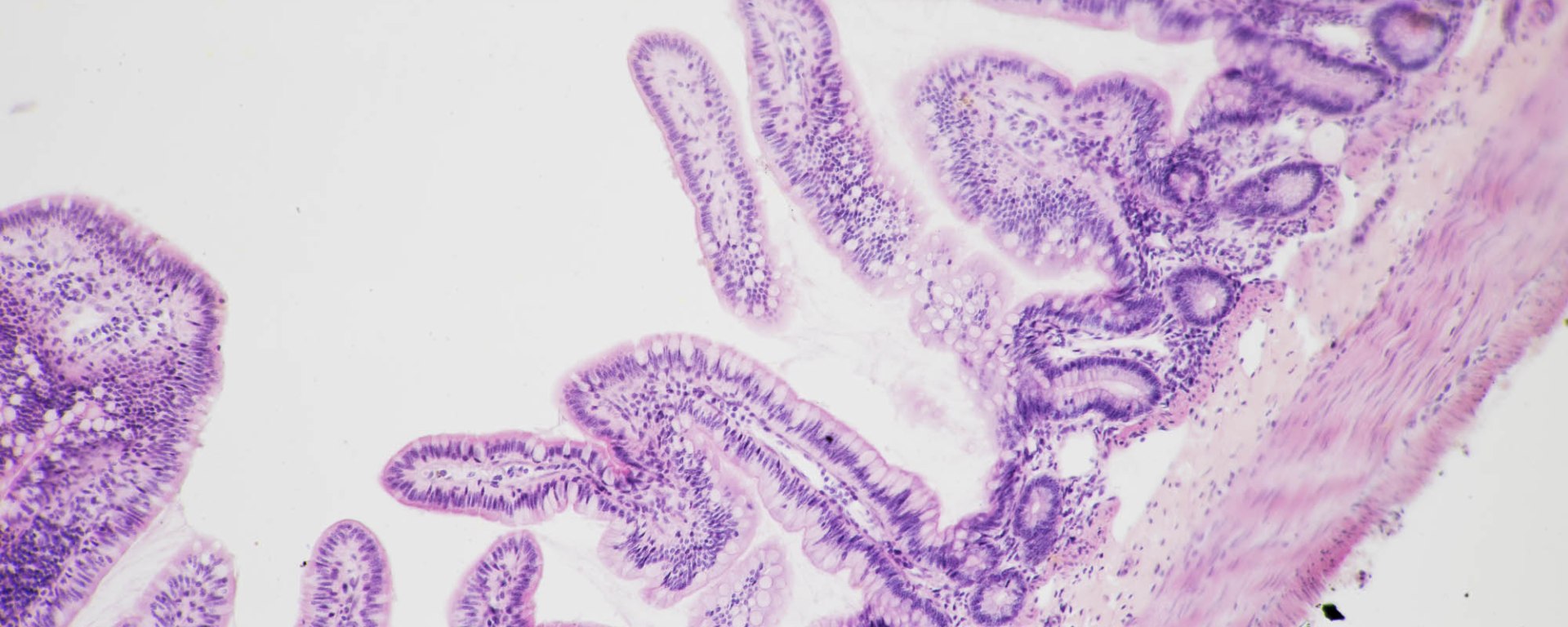 Mucosa of the Jejunum, showing the circular fold (plicae circulares) along the length of the villi. (TM: 100x, picture taken with a Nikon Planapo 10/0.4 on Sony A7ii)Another specimen of the villi of the Jejunum, showing the circularly arranged fold known as plicae circulares along the villi. (TM: 400x, picture taken with a Zeiss Planapo 40/1.0 Oil on Sony A7ii)Villi of the Ileum. Notice the presence of numerous goblet cells. Plicae circulares not prominent in this view. (TM: 100x, picture taken with a Nikon Planapo 10/0.4 on Sony A7ii)Villi of the Ileum showing the simple columnar epithelium and goblet cells. (TM: 630x, picture taken with a Zeiss Planapo 63/1.4 Oil on Sony A7ii)Another specimen of the Ileum showing the shorter villi and the Crypts of Lieberkuhn in the mucosa. These contain stem cells that regenerate the overlying epithelium. (TM: 100x, picture taken with Nikon Planapo 10/0.4 on Sony A7ii)Crypt of Lieberkuhn found in Jejunum. Notice the mitotic cell in the upper left corner of this crypt. (TM: 1000x, picture taken with a Zeiss Planapo 100/1.3 Oil on Sony A7ii)Intraepithelial lymphocytes found in the villi of the Ileum. (TM: 1000x, picture taken with a Zeiss Planapo 100/1.3 Oil on Sony A7ii)