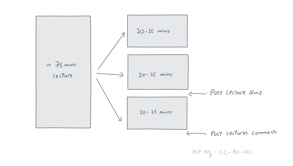 While COVID-19 and the subsequent remote class delivery brought its share of disruption, it also allowed me to try something new. One of the methods I tried was to “chunk” my lecture. I think the following schematic should explain it: