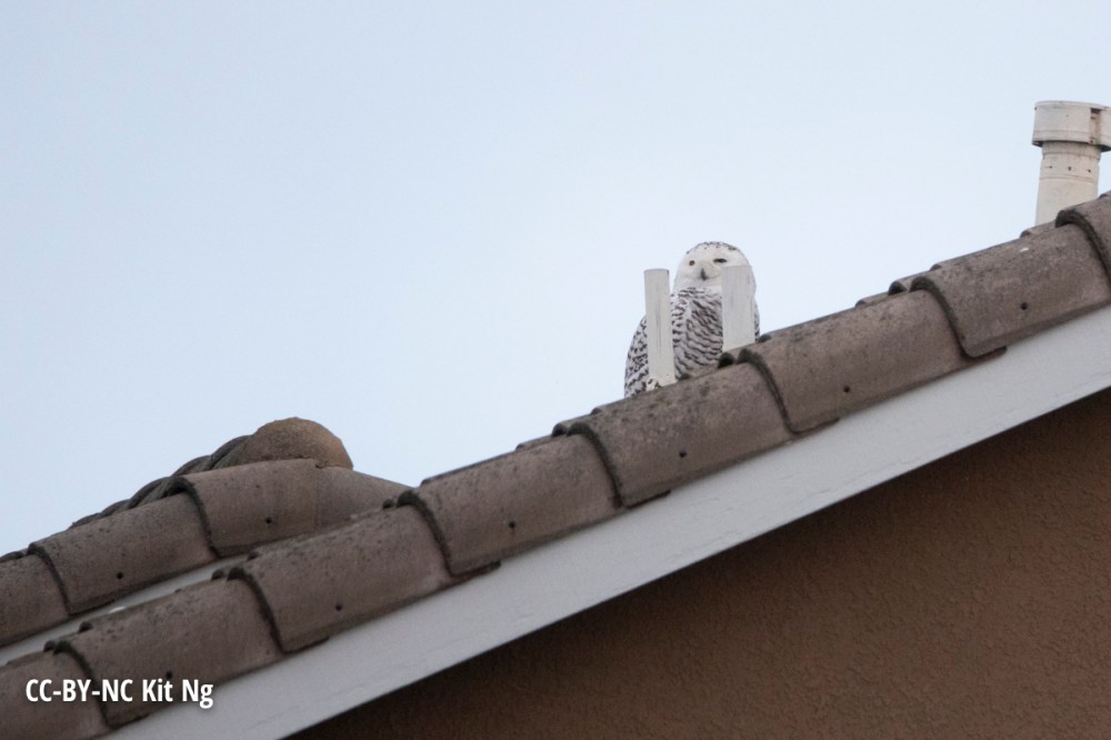 The most unexpected of observations: a snowy owl (Chinese name is 雪鴞) in Orange County, Southern California! Thanks to CNN for the tip.