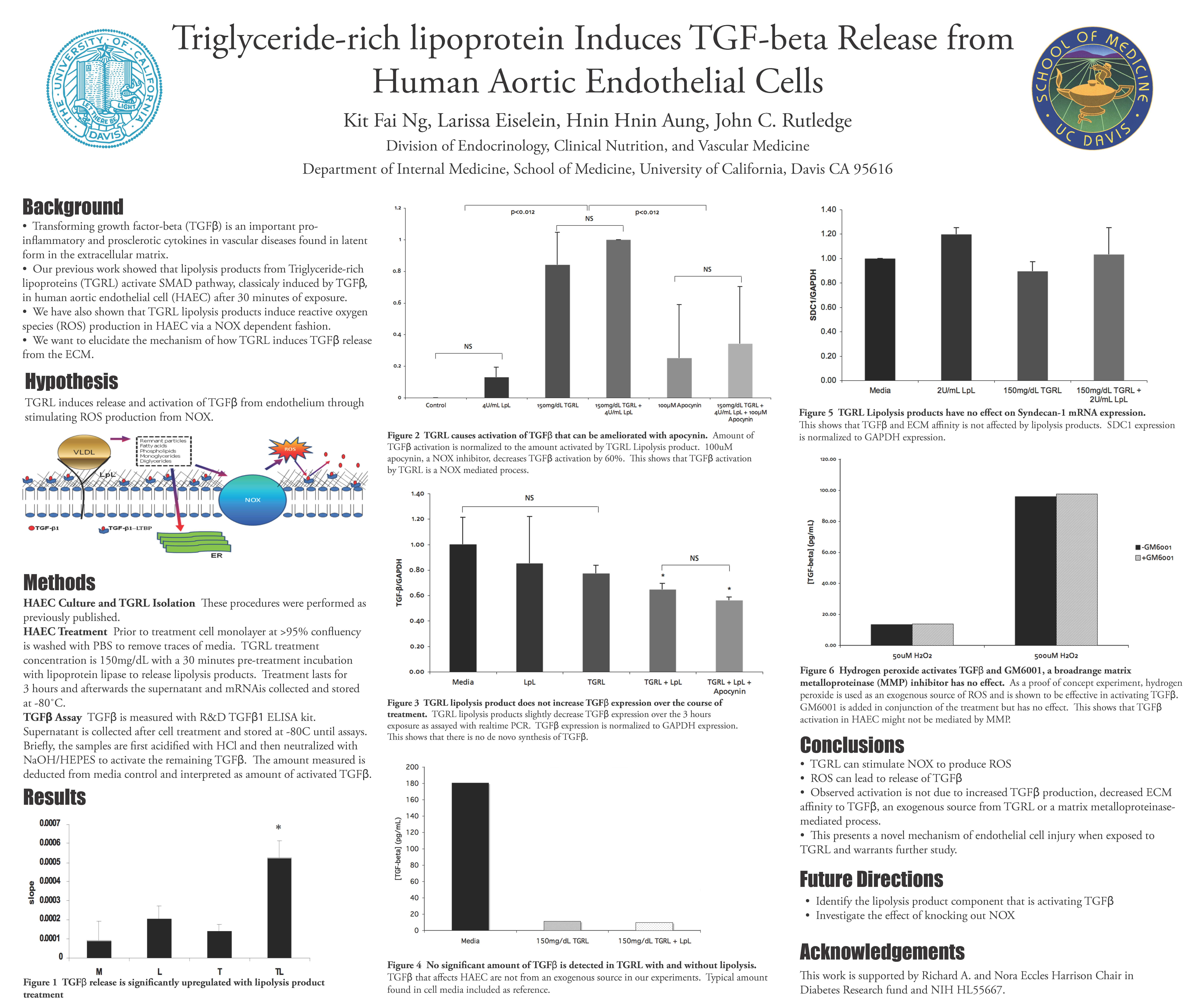 - “Triglyceride-rich Lipoproteins Release Transforming Growth Factor-beta from Human Aortic Endothelial Cells.” Molecular, Cellular and Integrative Physiology Fall Colloquium, Davis, CA. (Nov 6, 2008)
